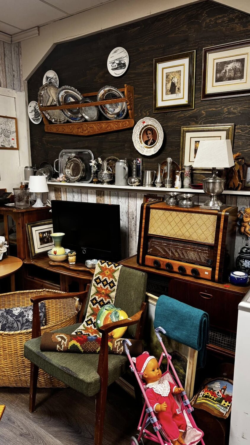 Butikkene er et skattkammer av brukte skatter, fra interiør, småmøbler, stoler, bord, sofaer til bøker, leker osv. Spesielt må vi nevne vår juleavdeling som er åpen hele året.